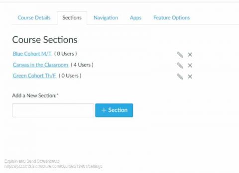 Sections allow you to subdivide students within a course. It allows you to set different due dates for assignments, quizzes, and discussions. This is ideal for managing the Blue and Green Cohorts in the hybrid schedule.