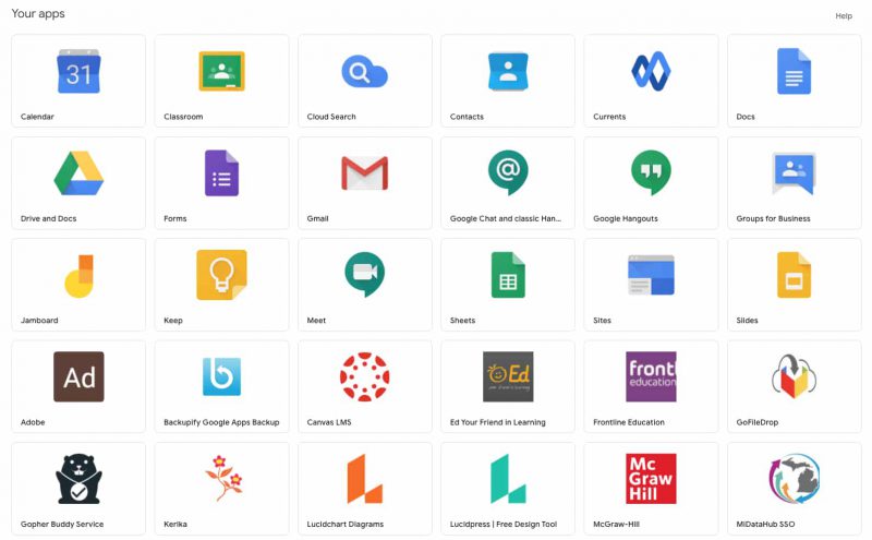 as it is more commonly called, appears in G Suite in various places like Drive, Gmail, etc. At times, it is unstable, and therefore drops the connection it has to district apps like Canvas, Savvas Easybridge, Zoom and others. Google admits their apps launcher is sometimes flaky and won’t always present 3rd party apps such as the aforementioned. Knowing that the waffle sometimes might not offer access to some of the apps we frequently use, we recommend bookmarking the Google apps dashboard so that you can always have access to what you need from another convenient place if the waffle is not working: https://gsuite.google.com/dashboard